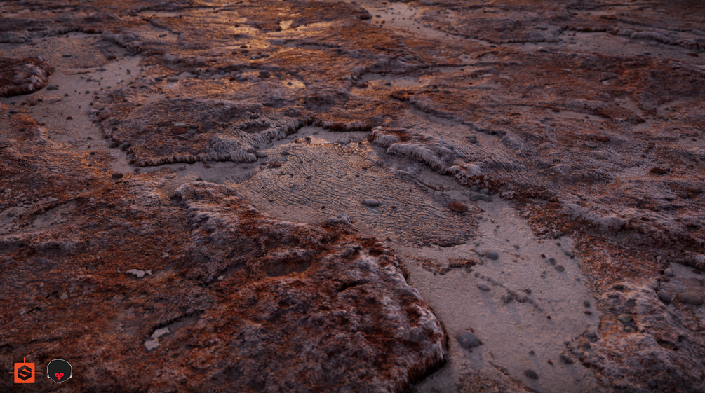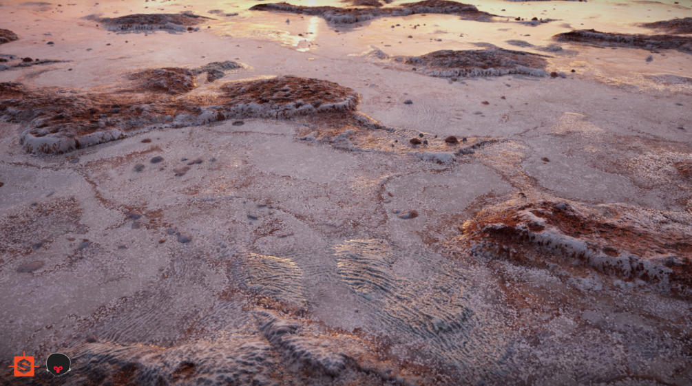 Material has 4 presets (default, sandy, wet and fossils) and a variety of exposed inputs for artistic changes. Material is set up for Metal/Rough workflow but can easily be changed with substances nodes.